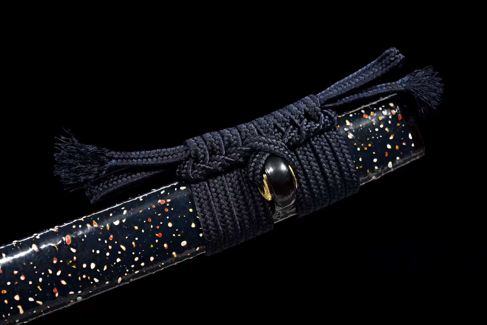 Saya (Scabbard 鞘) Black lacquer saya decorated with gold and copper flakes, resembling a starry sky