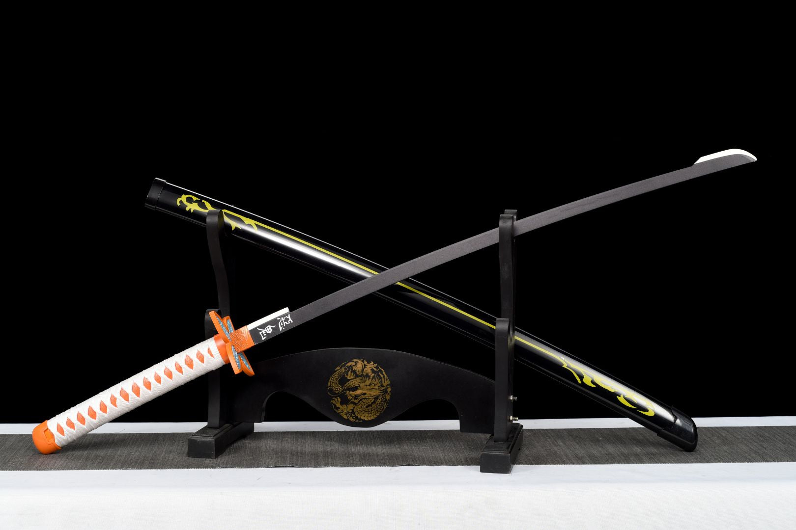 Blade (Kissaki 刃) — Forged from 1060 carbon steel with a subtle violet hue, representing Shinobu’s delicate yet lethal nature.
