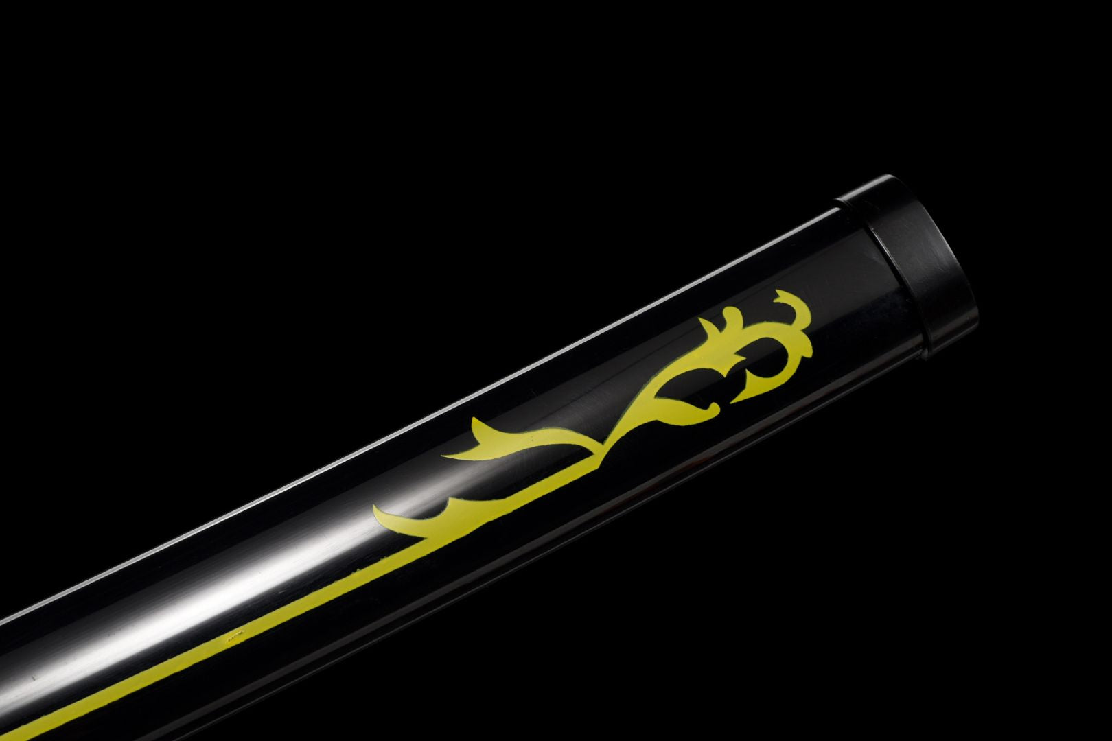 Scabbard (Saya 鞘) — The black lacquered saya with golden butterfly details completes the refined, feminine design of the weapon.