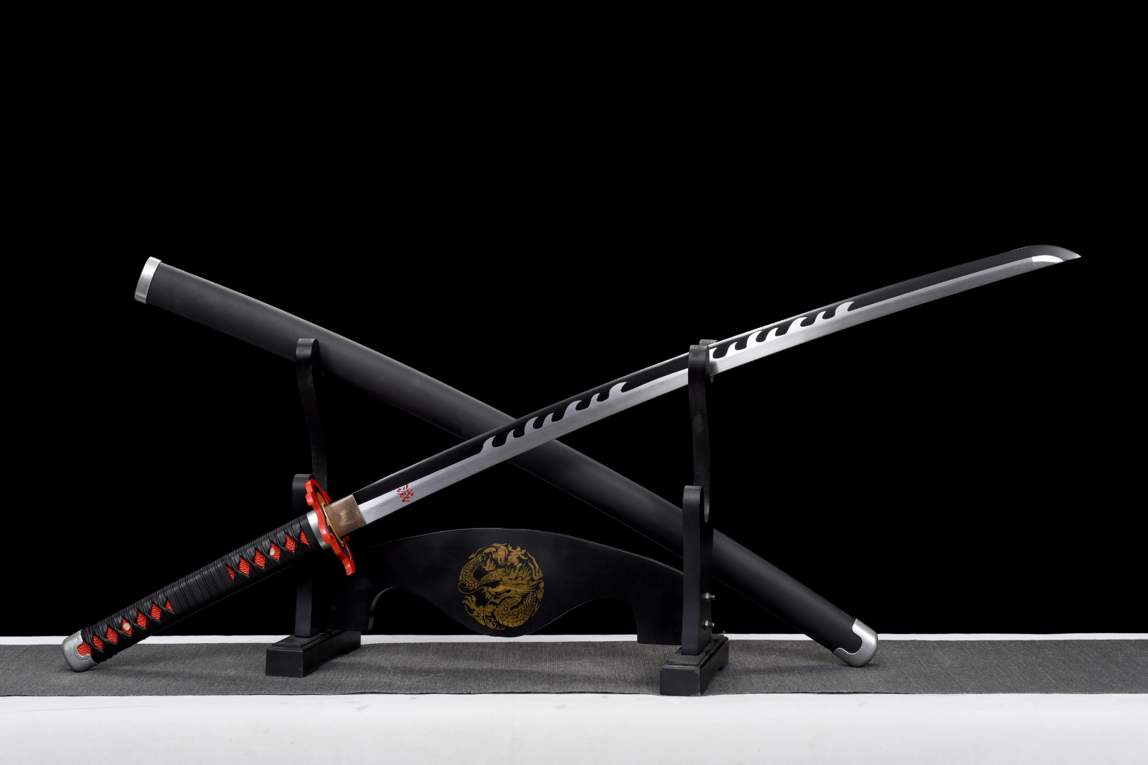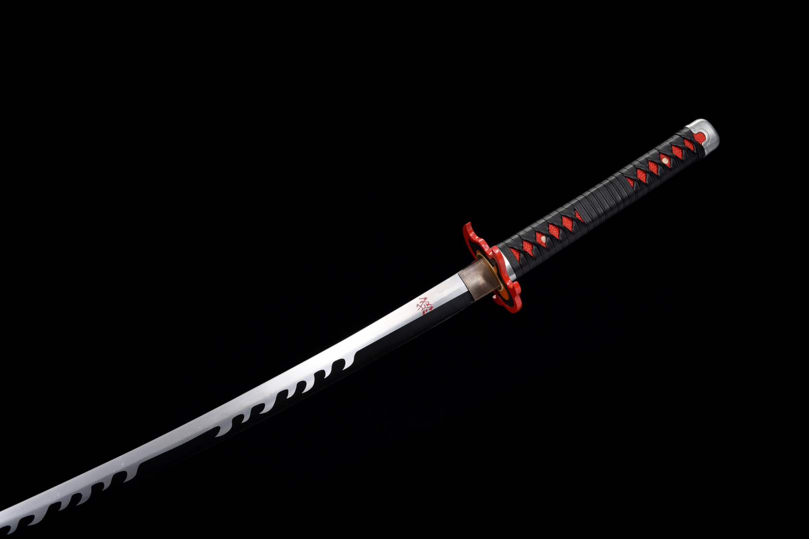 The Katana Tanjiro V3 is an elegant, refined sword inspired by the popular anime hero. The 1060 carbon steel blade is sharpened and engraved with Kanji, giving this replica an authentic touch. The sculpted iron guard and red-lacquered wooden scabbard provide a striking contrast. The handle is adorned with black stingray leather, accompanied by white cording for a comfortable grip.