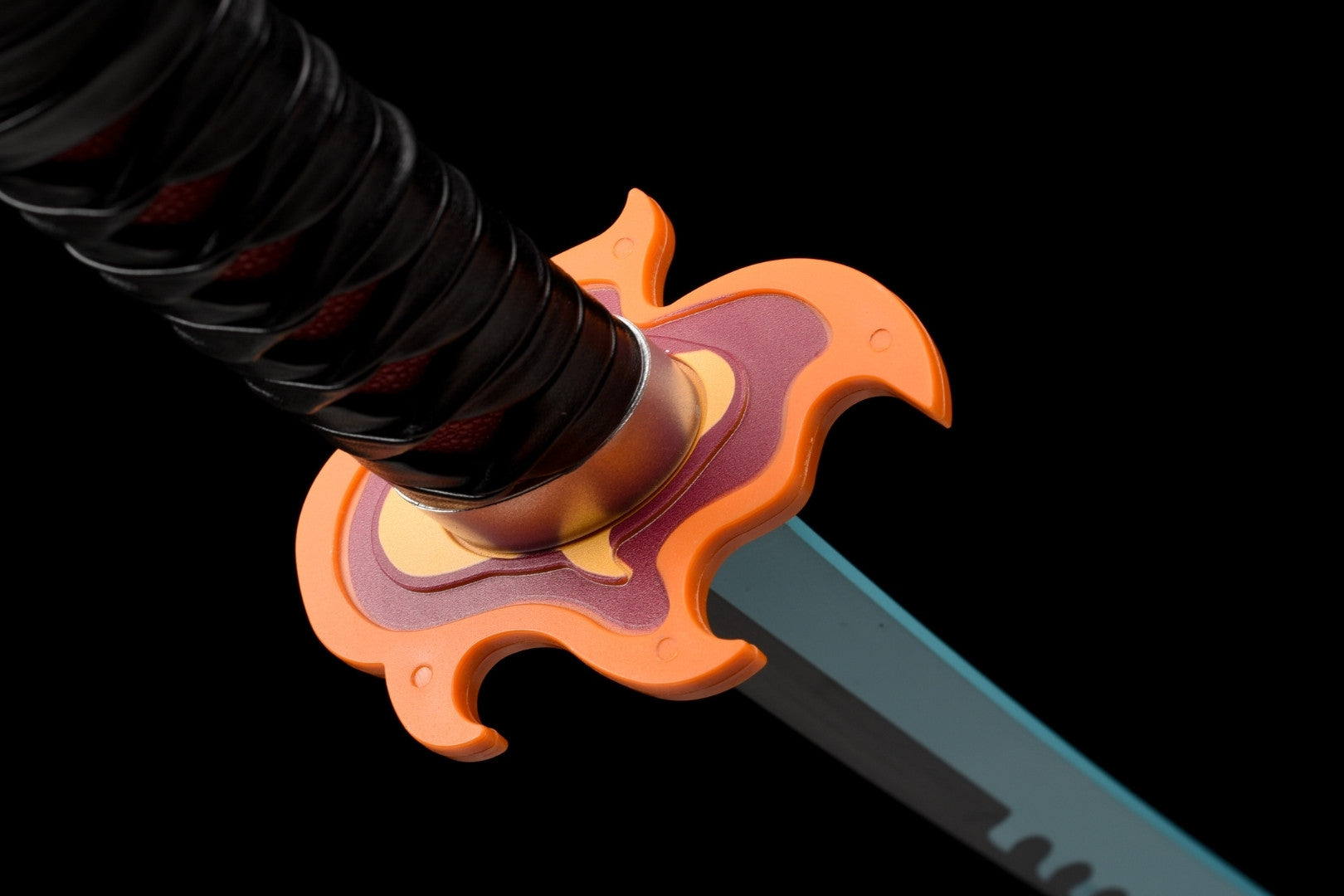 Guard (Tsuba 鍔) — The orange flame-shaped tsuba symbolizes the fusion of power and compassion that defines Tanjiro’s character.