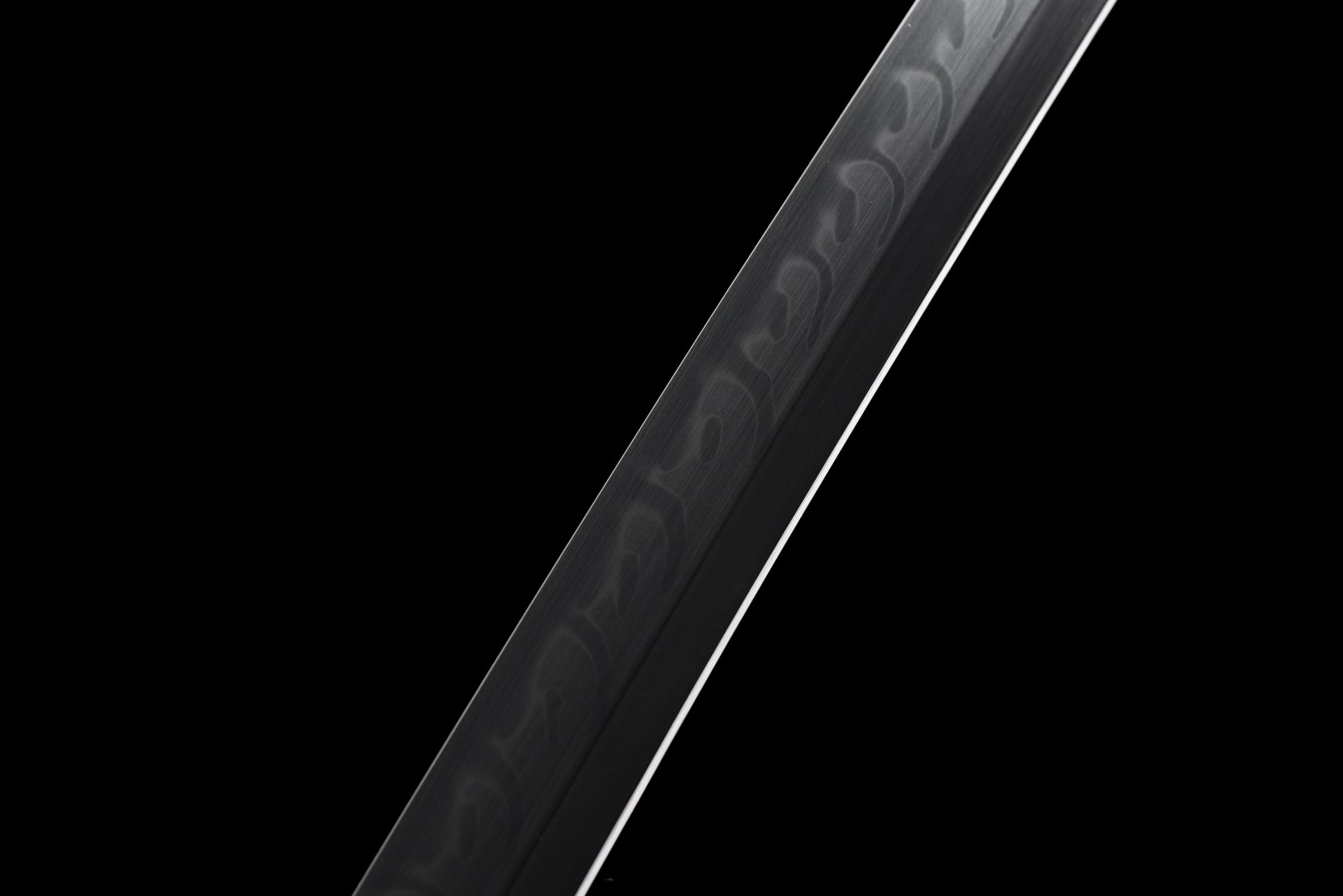 Guard (Tsuba 鍔): The black openwork tsuba mirrors flowing waves and sky currents, paired with golden accents for a refined, noble finish.