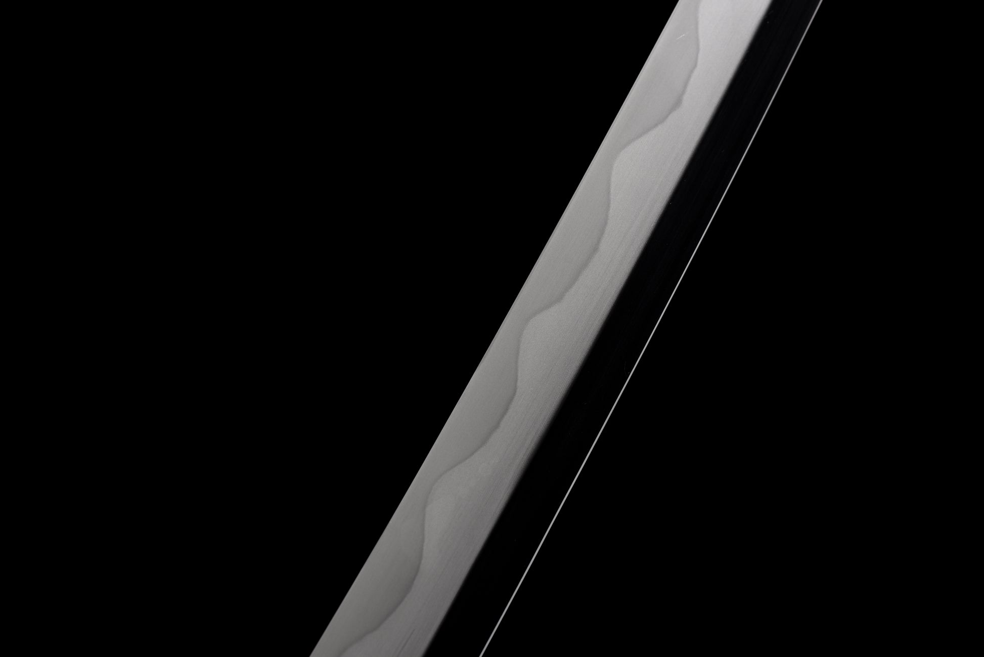 Blade (刀身): Forged from premium T10 steel with a genuine hamon and mirror polish, this blade offers exceptional balance and sharpness. The distinctive wavy hamon symbolizes the flow of life and the calm precision of the samurai.