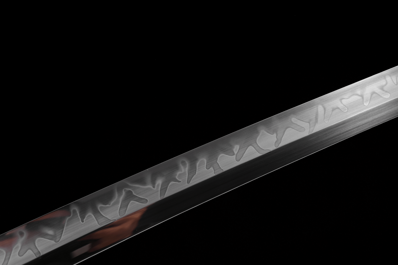 Blade (刀身): Forged from T10 high-carbon steel and polished to a mirror sheen, the blade showcases a rare claw-pattern hamon, achieved through precise clay tempering and expert heat treatment. The result is a perfect fusion of artistry and performance.