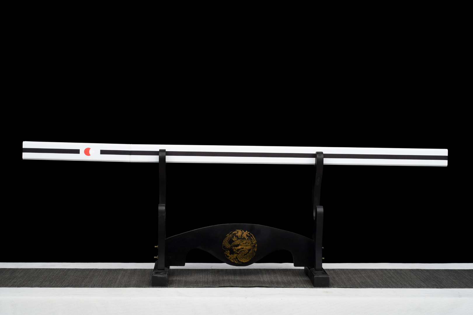 Scabbard (Saya 鞘) White lacquered saya with black lines and red Uchiha crest