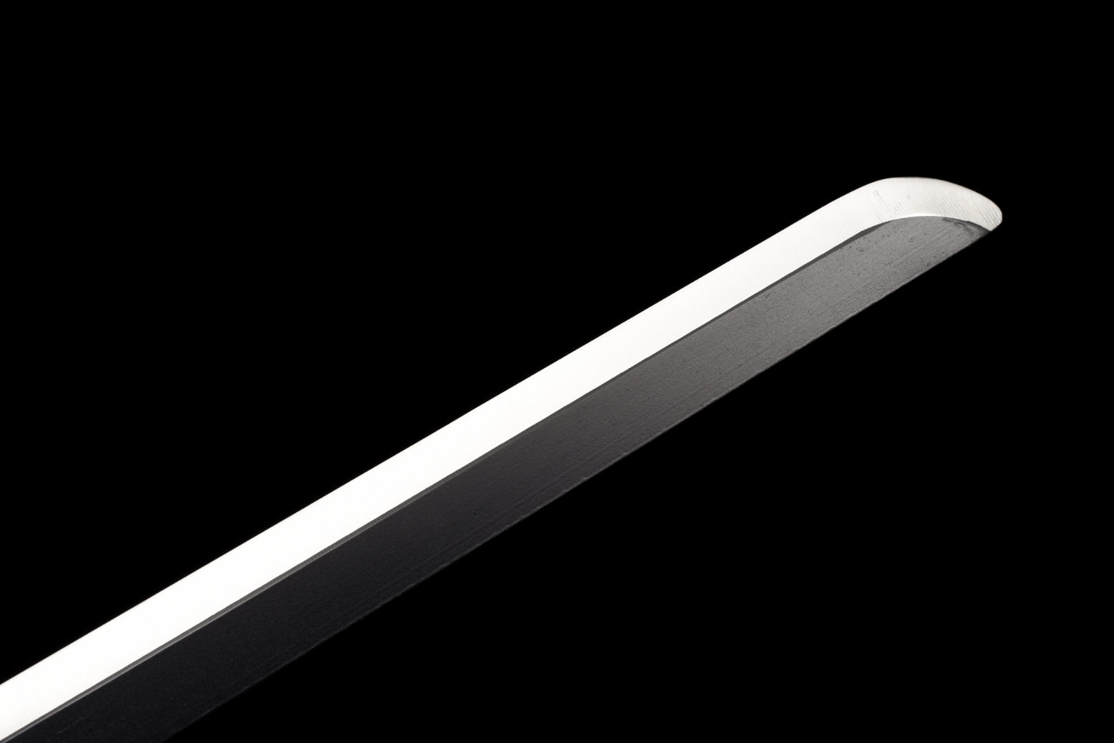 Blade (Kissaki 刃) Black 1060 carbon steel blade, straight-edged with mirror finish